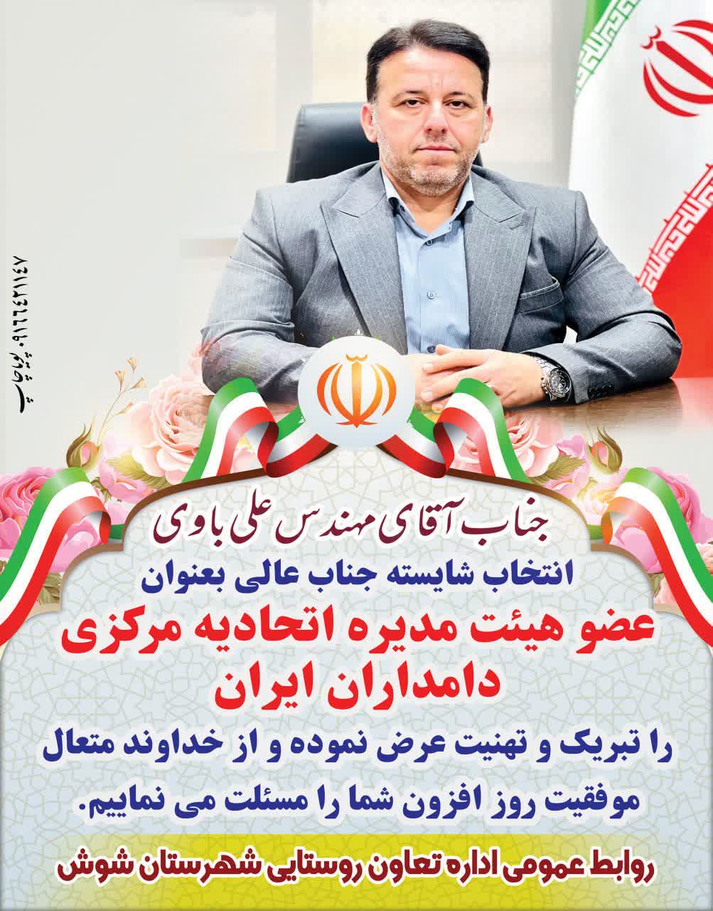 علی باوی عضو هیئت مدیره اتحادیه مرکزی دامداران کشور شد